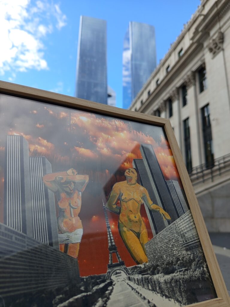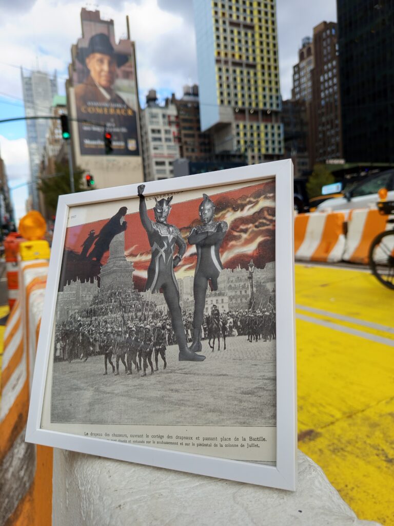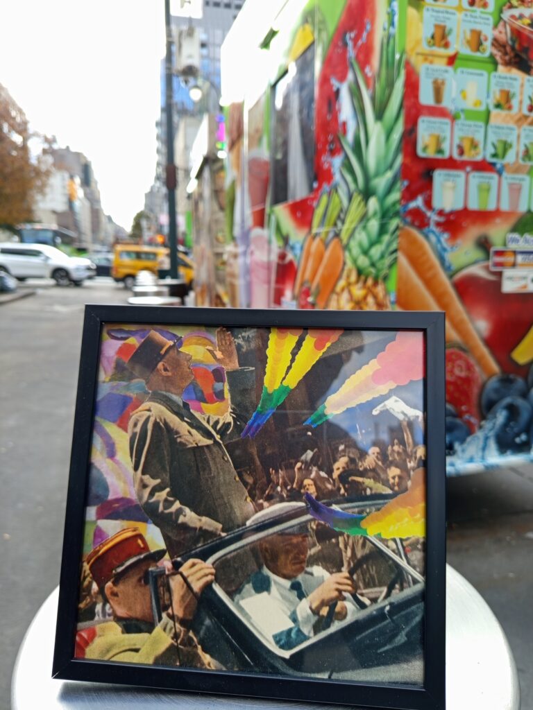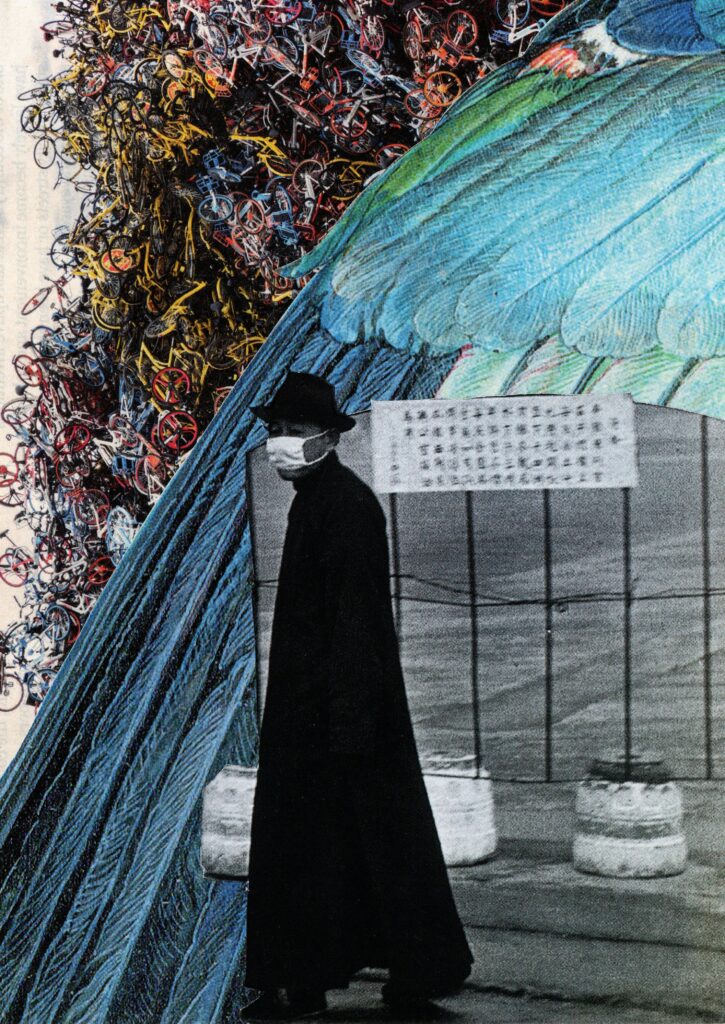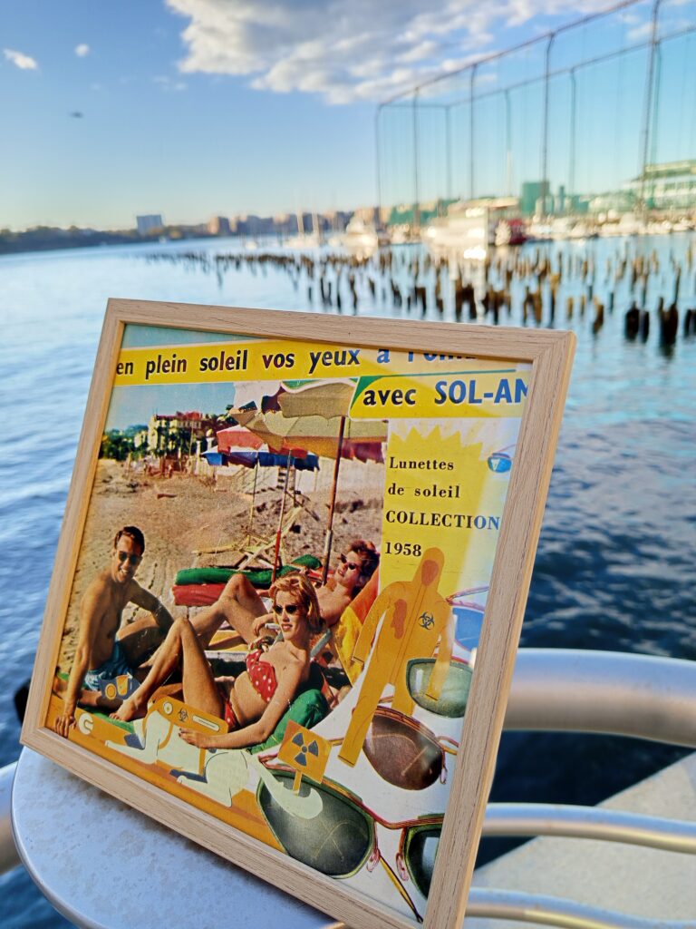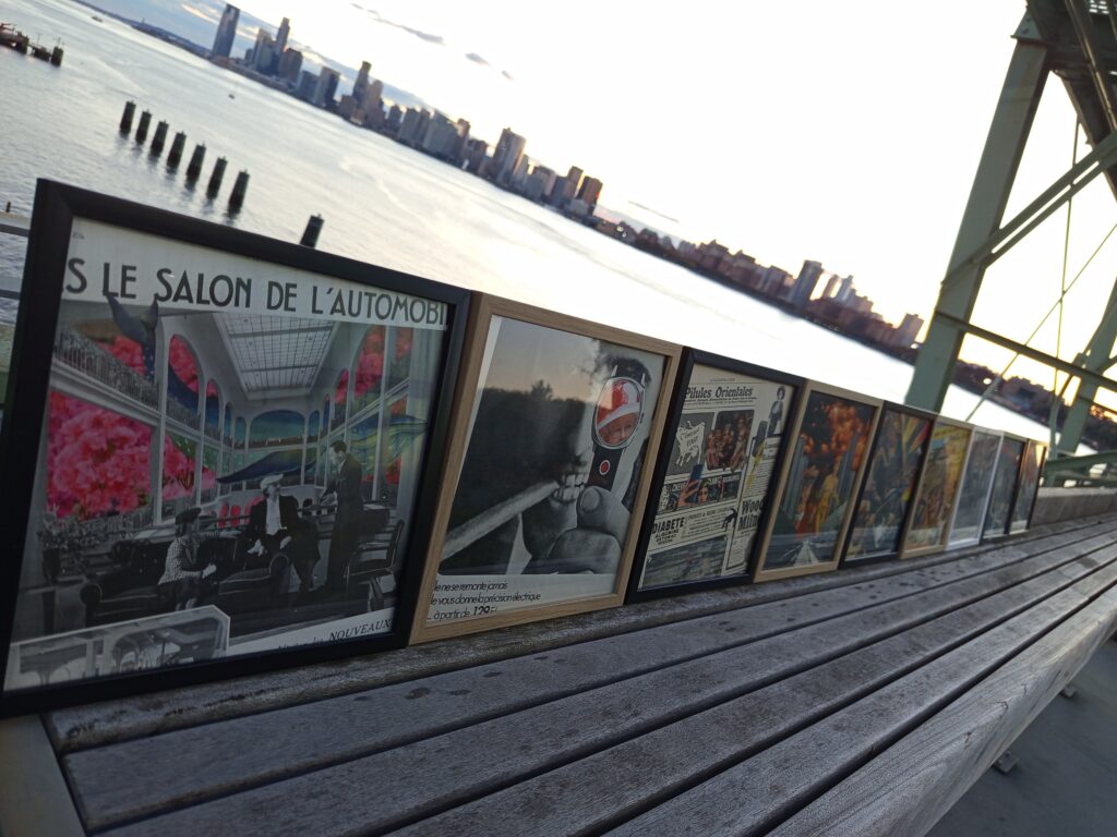 De ces trouvailles naissent mes collages : des assemblages où se rencontrent l’ironie du monde, la mémoire collective et le hasard.